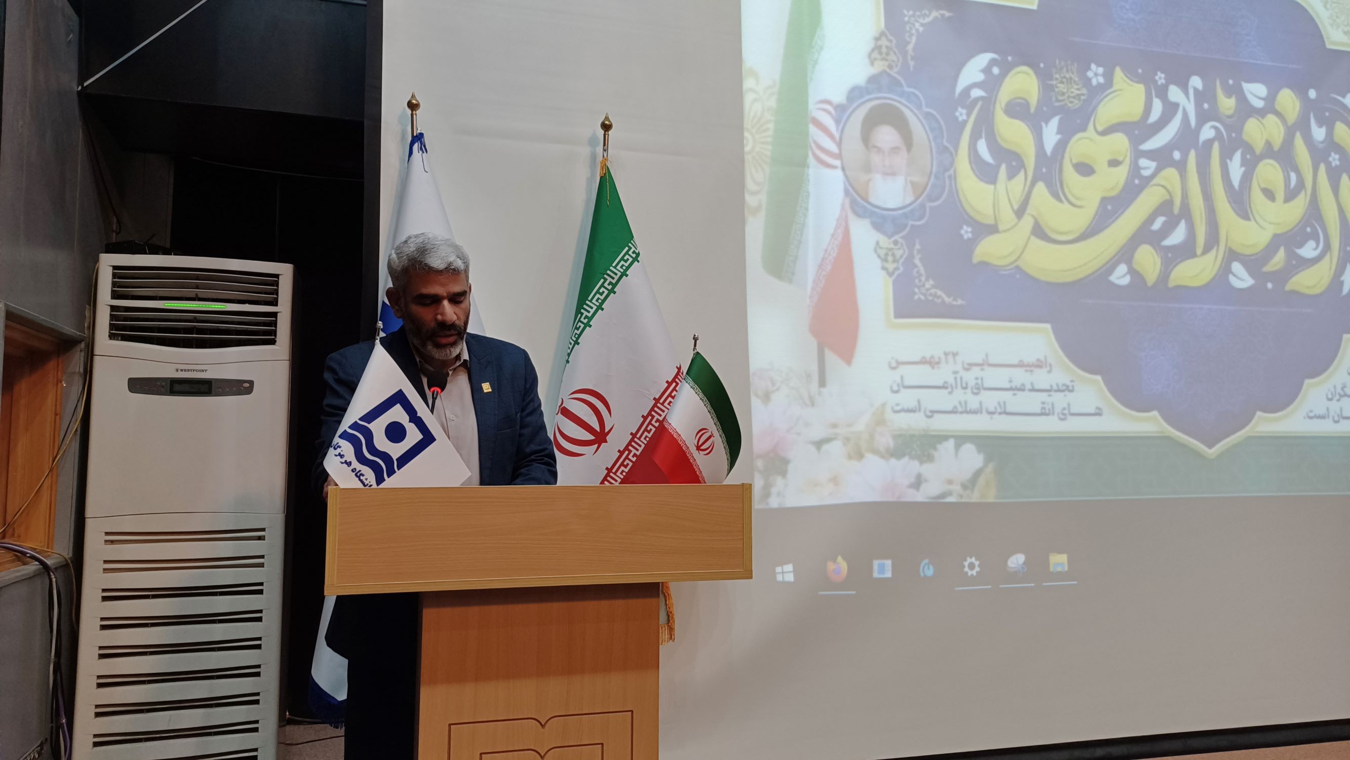 این مراسم با تلاوت آیاتی چند از کلامالله مجید و پخش سرود ملی جمهوری اسلامی ایران آغاز شد. در ادامه، جناب آقای دکتر کریمی، معاون فرهنگی و اجتماعی دانشگاه هرمزگان، ضمن تبریک اعیاد فرخنده ماه شعبان، بهویژه میلاد باسعادت حضرت ولیعصر (عج) و همچنین ایامالله دهه فجر، با خوشامدگویی به حاضران، بر ضرورت پاسداشت این ایام سرنوشتساز و نقشآفرینی دانشگاهیان در صیانت از ارزشهای انقلاب اسلامی تأکید کرد.